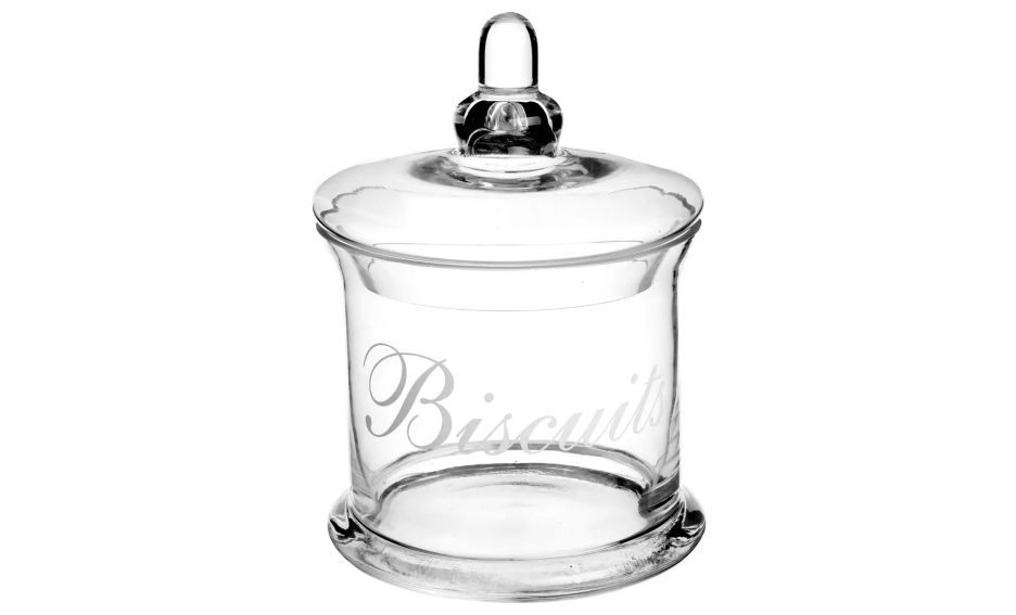 Staklenka s printom idealna je za spremanje slatkiša. Idealna za pohranu lomljivih keksi kao što poručuje i natpis na staklenci(Biscuits), vafli, čokolade itd. Gornji poklopac s praktičnom ručkom štiti od vlage i isušivanja. Osim toga, estetski atraktivan dizajn svakako može poslužiti kao prekrasan ukras Vaše kuhinje i stola. Za vizualno atraktivnu cjelinu može se kombinirati s ostalim staklenkama sličnog dizajna.