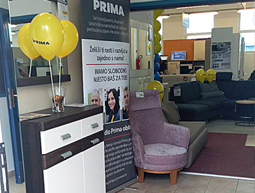 Prima salon Labin nalazi se na izlazu iz grada, u blizini opskrbnog centra i autopraone i proteže se na 550 kvadrata. Svim posjetiteljima na raspolaganju je parking. Stručno prodajno osoblje salona Labin rado će Vam pomoći pri odabiru cjelovitog rješenja za Vaš dom, od kuhinja, blagovaonica, dnevnih boravaka, spavaćih i dječjih soba do kupaonica i predsoblja. Posjetite nas i uvjerite se u hrvatsku kvalitetu. Prima namještaj vodeći je hrvatski proizvođač namještaja s dugogodišnjom tradicijom u proizvodnji, maloprodaji i veleprodaji kućnog namještaja.