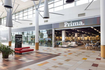 Prima salon Osijek nalazi se na 1. katu shopping centra Mall Osijek i prostire se na 2.600 m². Svim posjetiteljima na raspolaganju je parking, a osiguran je i pristup invalidima. Do salona možete doći i autobusnim linijama Čepin i Briješće. U salonu vas čekaju ekskluzivni Studio za kuhinje po mjeri te Studio za dizajn interijera, a možete pronaći i COCO maison dekoracije.