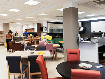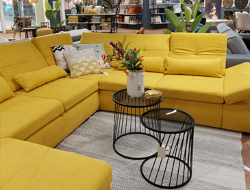 Od ulaza, u prizemlju možete razgledati asortiman kuhinja i blagovaonica, bogatu ponudu tapeciranog namještaja i regala za dnevne sobe te prošireni asortiman kupaonica. Na katu možete pronaći sve za opremanje spavaćih soba, ali i onih za djecu i mlade. Tu se nalazi i namještaj za predsoblja, kao i moderan uredski asortiman. Salon je opremljen i liftom kako bi pristup bio zagarantiran roditeljima s dječjim kolicima, ali i osobama s invaliditetom.