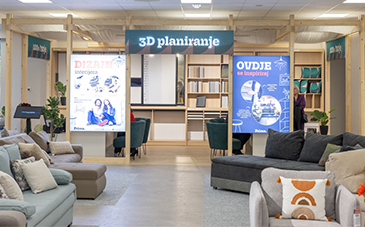 Prostor salona proteže se na 3200 kvadrata, podijeljen je na dva kata i uređen je u novom prodajnom konceptu 100% tvoje koji kupovinu čini još većim užitkom. Pulski salon vas u prostoru za 3D planiranje poziva da opipate sve tkanine i doživite teksture, da istražite sve mogućnosti dizajna i prilagodite ih 100% sebi i svom prostoru.