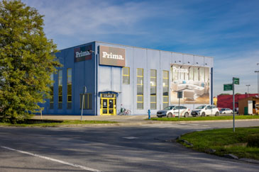 Prima salon Valpovo nalazi se uz gradsku obilaznicu, u blizini Plodina i Lidla, te se prostire na 1.100 m². Svim posjetiteljima na raspolaganju je veliki parking. U salonu vas čekaju ekskluzivni Studio za kuhinje po mjeri te Studio za dizajn interijera u kojem ćete s našim prodajnim savjetnicima brzo i jednostavno kreirati svoj dom iz snova.