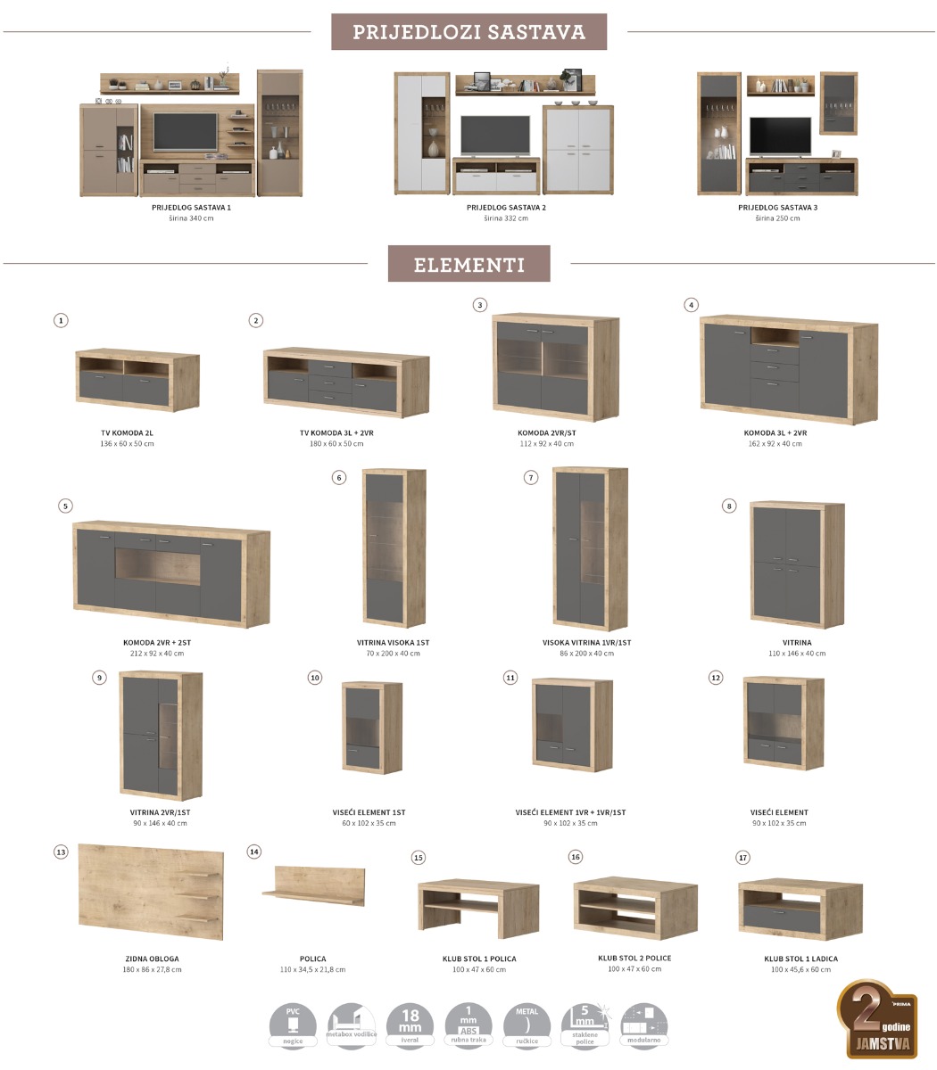 Moderan program regala Porta rezultat je inovativnog Priminog dizajna, odabira vrhunskih materijala i vlastite proizvodnje. Odabirom kombinacije boja fronti i korpusa prilagođava se individualnom ukusu i svakom stilu uređenja. Zahvaljujući jednostavnim linijama i atraktivnom dizajnu odgovaraju mu brojni modeli Prima garnitura za sjedenje.