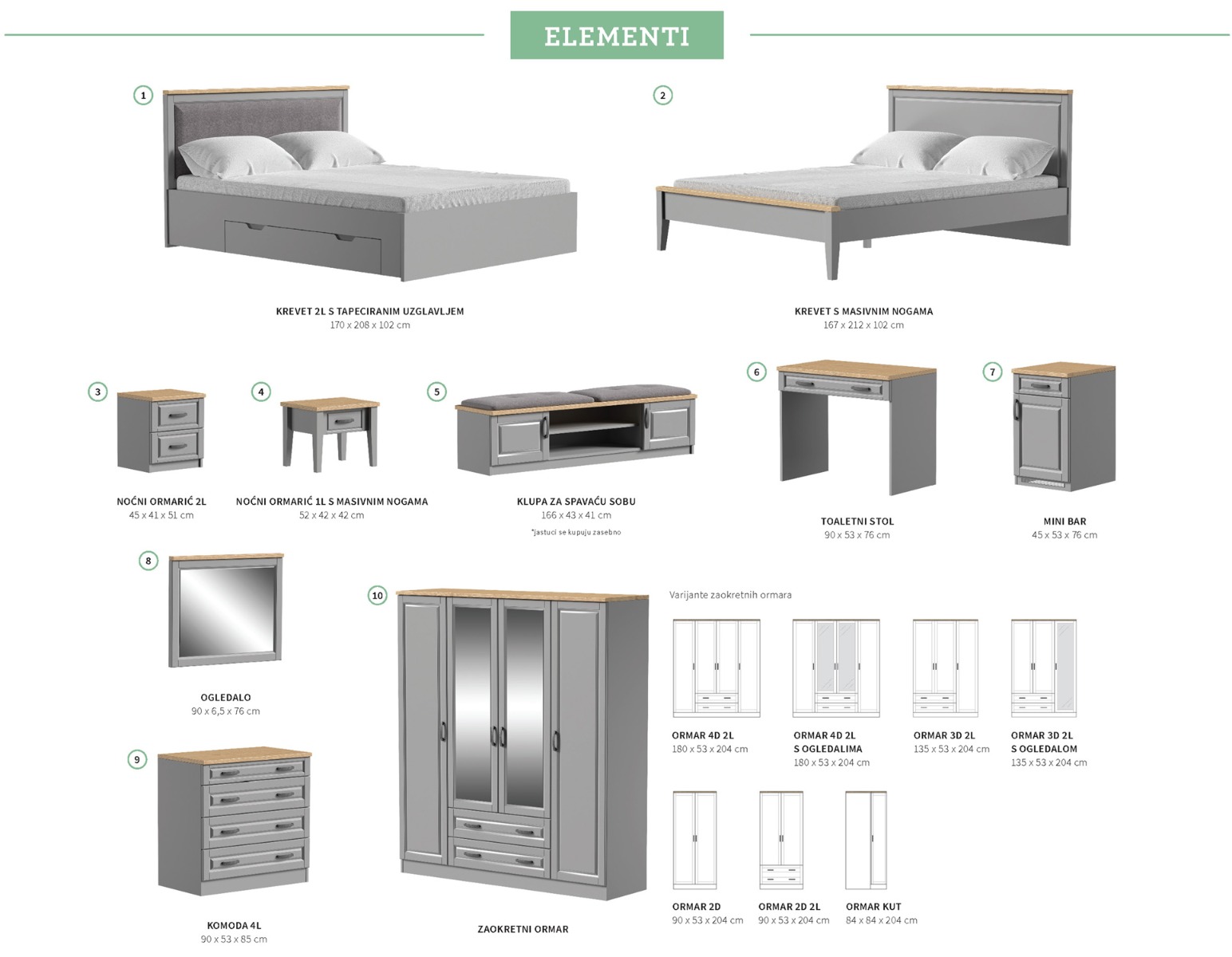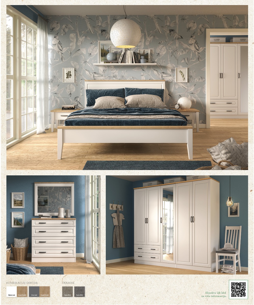 Program soba Julija osvaja poklonike retro stila. Efektne profilirane fronte mogu biti bijele ili sive boje uz detalje u boji drveta za dodatnu toplinu. Profinjene linije Juliju čine savršenim odabirom za kreiranje prepoznatljivog romantičnog utočišta.