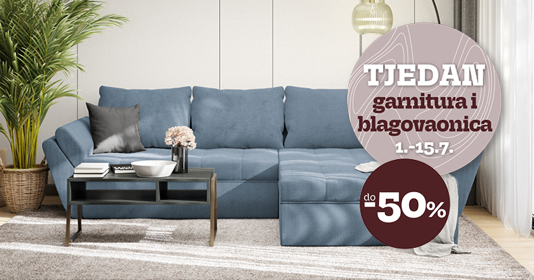 Tjedan garnitura i blagovaonica od 1.7. do 15.7. donosi do 50% uštede na garniture i blagovaonice. Požurite i iskoristite ovu akciju. Učlanite se u Prima klub pogodnosti, skupljajte bodove i iskoristite uštede koje donosi Tjedan garnitura i blagovaonica. Čekamo vas!
