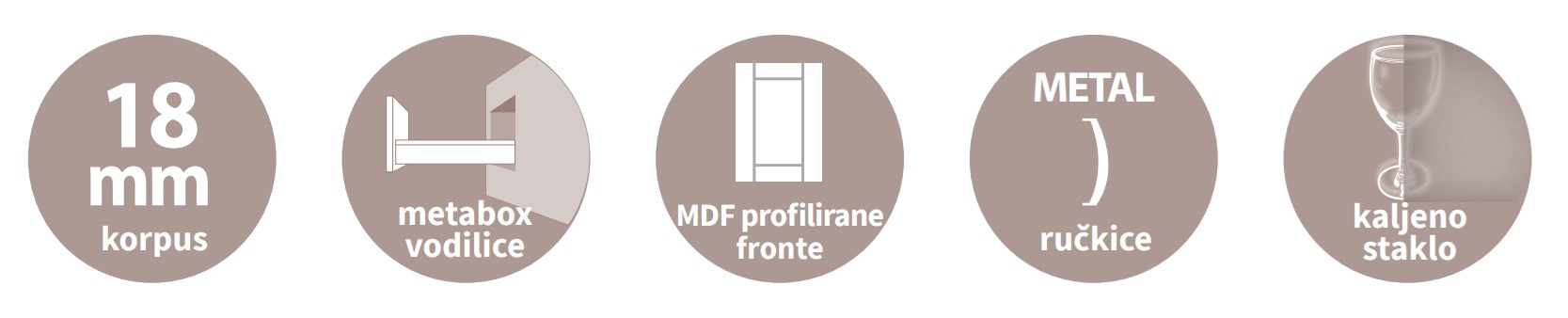Program Julija unosi toplinu i šarm prošlih vremena u vaš dom. Inspiriran retro stilom, ovaj namještaj odlikuju rustikalne MDF fronte u mat izvedbi koje daju prostoriji profinjeni, ali domaći ugođaj. Metalne ručkice dodatno naglašavaju vintage karakter, dok kombinacija klasične bijele i dekora hrasta Chalet pruža skladnu ravnotežu između elegancije i prirodne teksture.